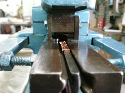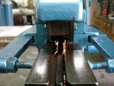 Once the core is dipped and the frames removed, the tubes are shaped to match the tapered tank using light hammer blows.